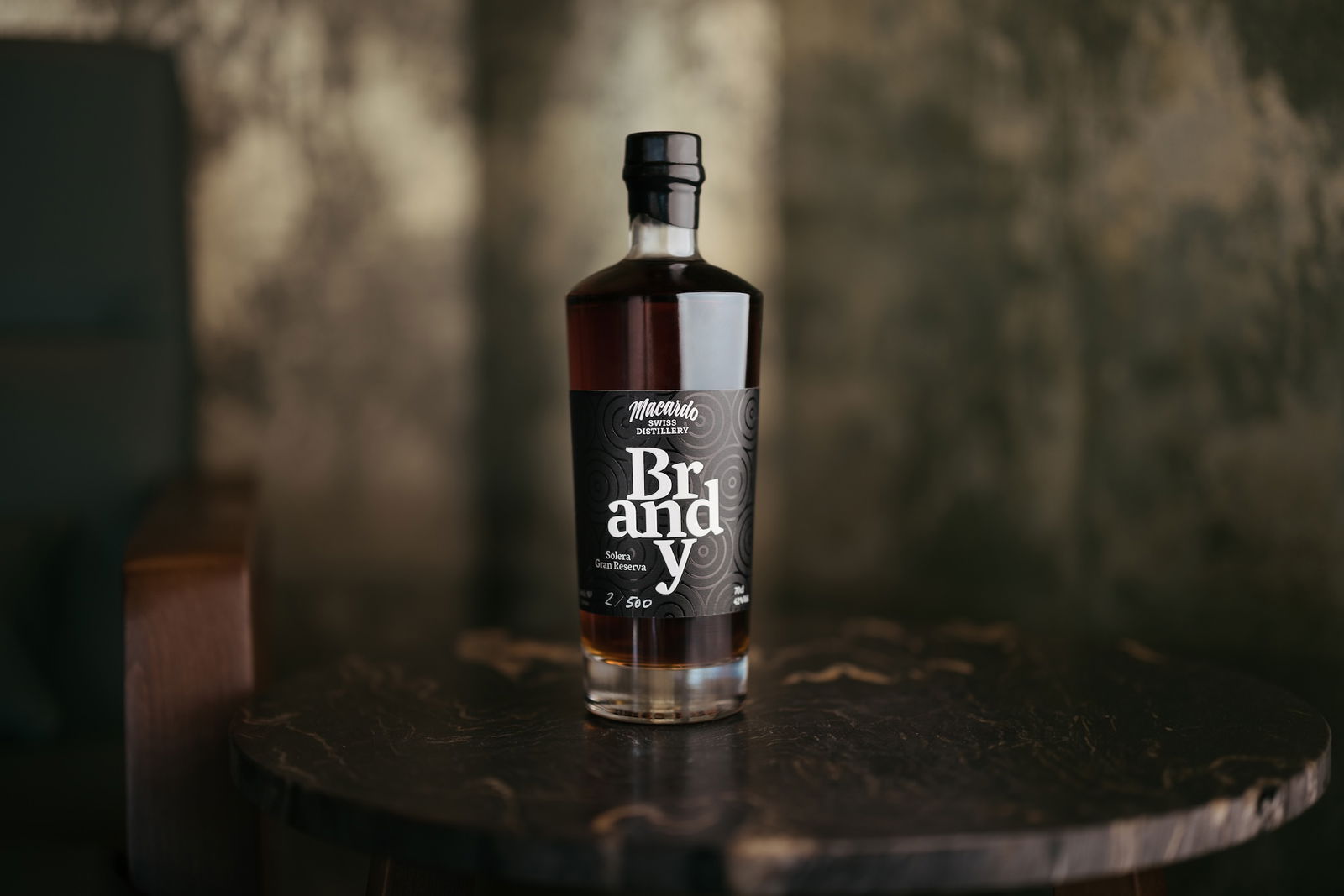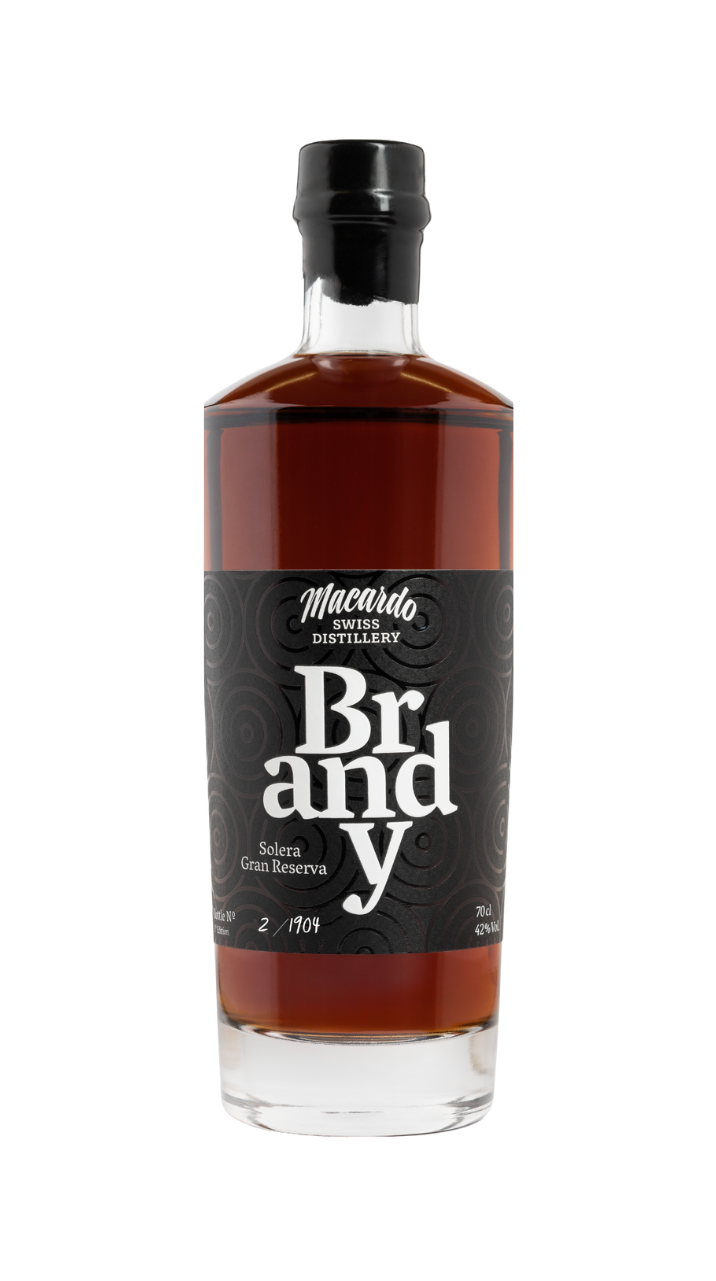 Bei Macardo im thurgauischen Amlikon wird diese Tradition neu interpretiert: Der Macardo Brandy – Solera Gran Reserva ist der erste Schweizer Premium-Brandy, hergestellt aus erlesenen Thurgauer Trauben, gereift im traditionellen Solera-Verfahren und veredelt in ehemaligen Macardo-Whiskyfässern. Diese besondere Reifung verleiht ihm Tiefe, Eleganz und feine Noten von Vanille, Karamell und Trockenfrüchten. Die letzte Reifung findet in einem 500L Grand Marnier Fass statt.
