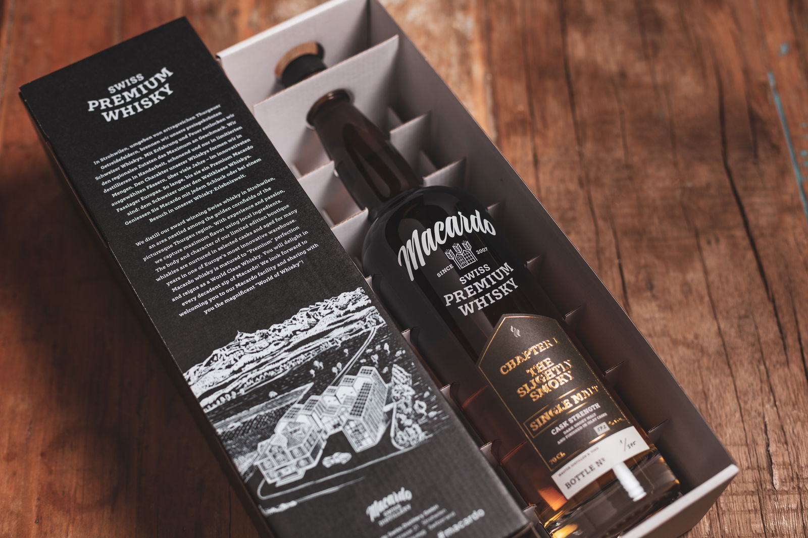 Anschliessend wurde dieser spezielle Single Malt Whisky für weitere vier Jahre in einem Fass nachgereift. Dieses Fass hatte zuvor schottischen Islay-Whisky beherbergt. Diese sorgfältig ausgewählte Fasskombination verleiht unserem 'Slightly Smoky' eine tiefgehende Komplexität sowie markante maritime und leicht torfige Noten. Er überrascht mit einer mutigen Geschmackskombination – made in Thurgau! Auf nur 940 handnummerierte Flaschen begrenzt!