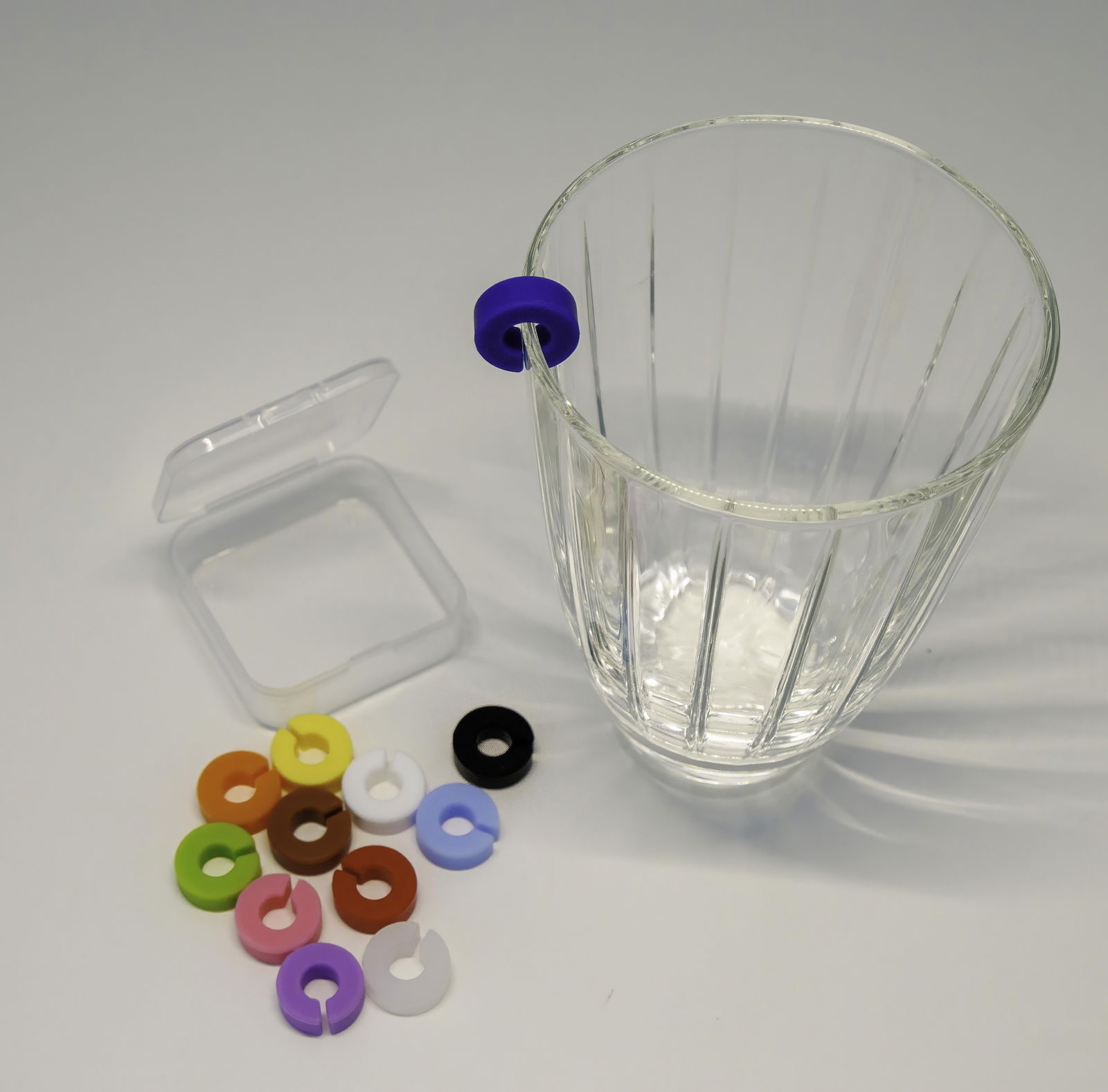 Dank der handlichen Einkerbung an einer Seite lassen sich die Marker mühelos am Rand eines Bechers anbringen oder am Stiel eines Weinglases befestigen. Diese Marker bestehen aus strapazierfähigem Silikon, sind leicht zu reinigen und kommen zusätzlich mit einer praktischen Box, die nicht nur Platz spart, sondern auch für eine ordentliche Aufbewahrung sorgt.