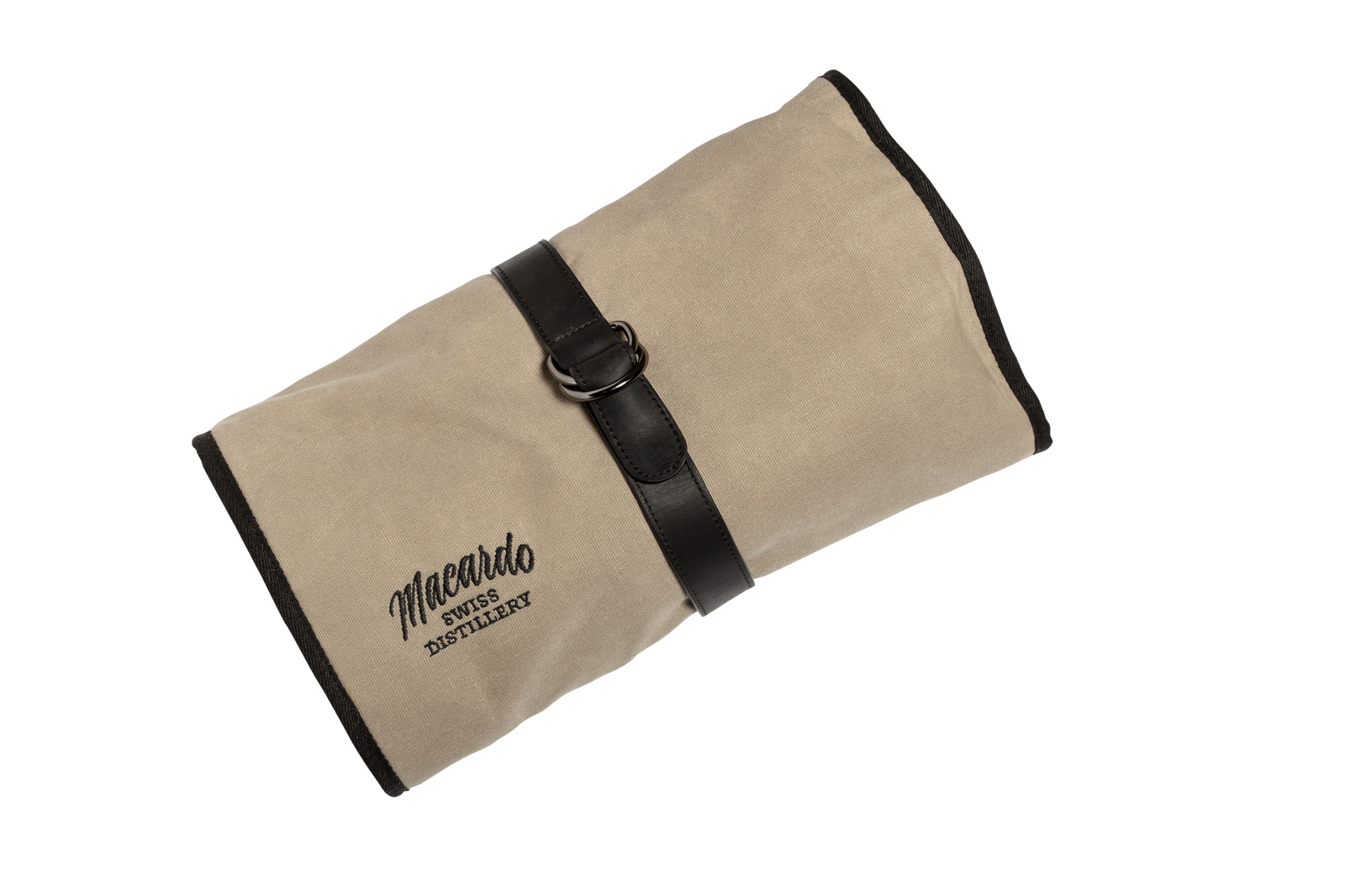 Verpackt in einer edlen, sandbraunen Leinentasche mit abgesetzten Rändern, enthält das Set 10 professionelle Bartools aus Edelstahl.