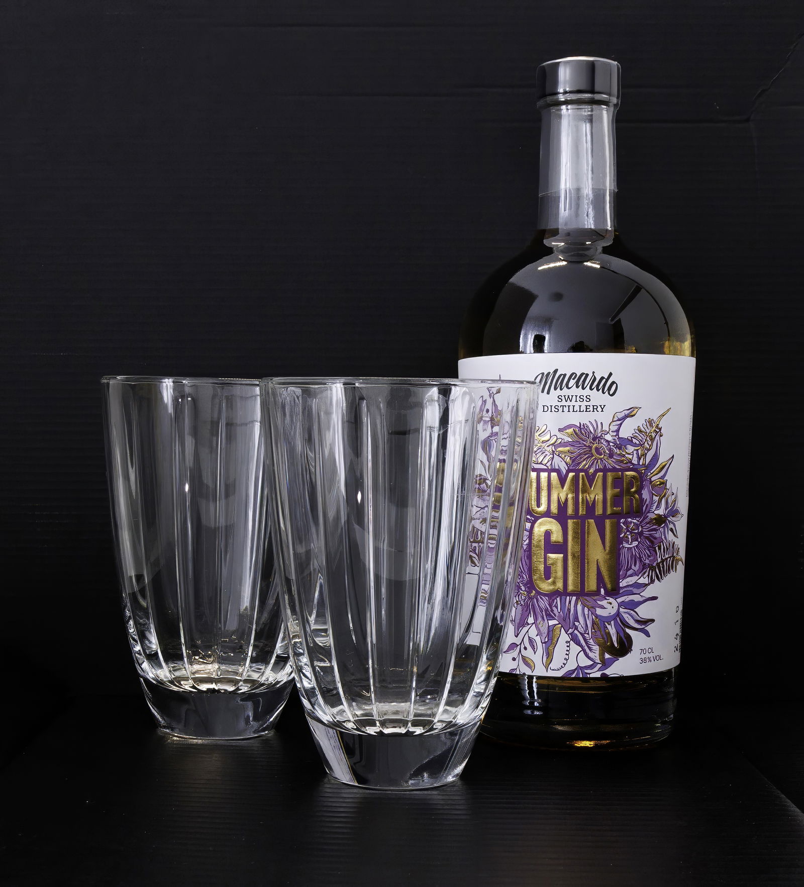Inhalt: 2 Gläser mit Macardo-Logo, inkl. Verpackung