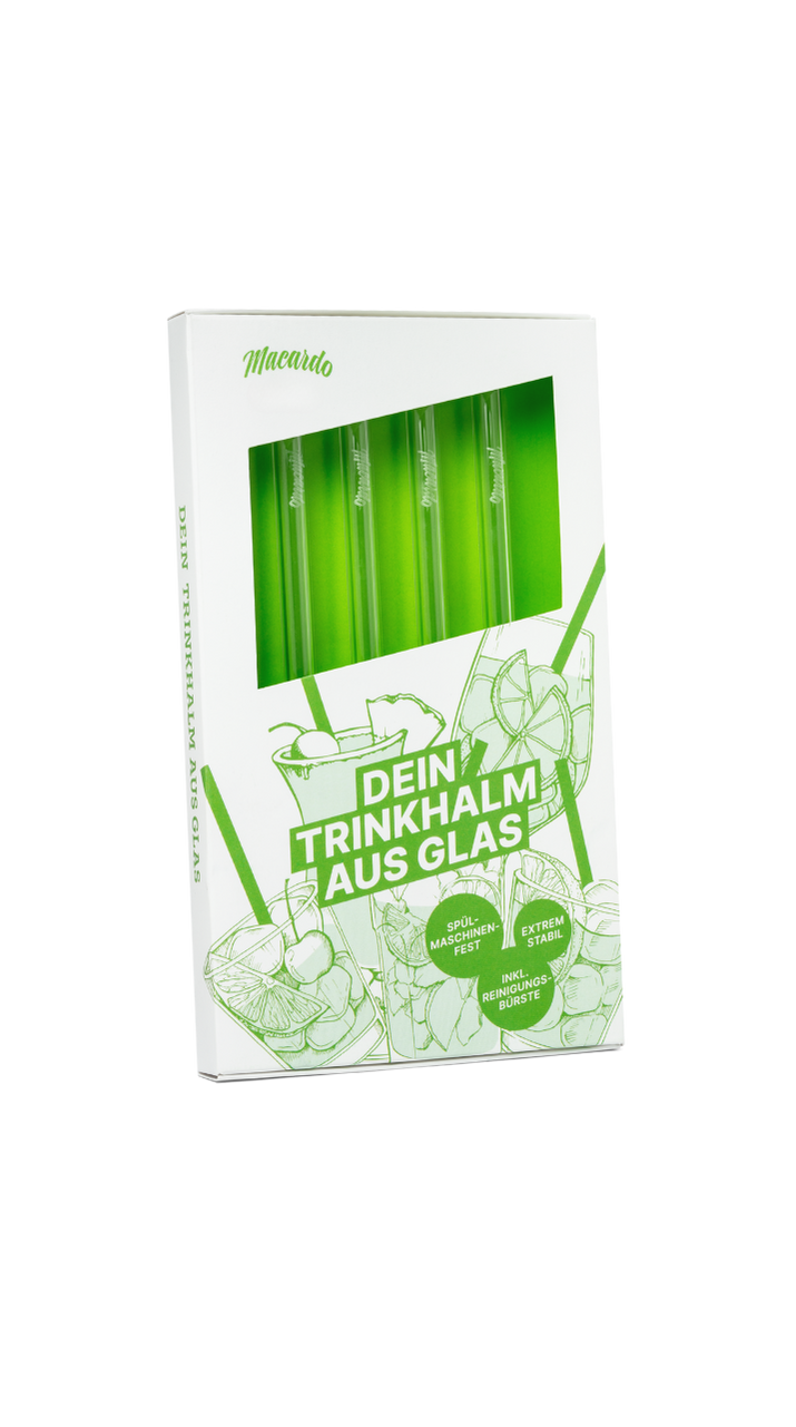Der Trinkhalm aus Glas bringt mehr Geschmack somit weniger Plastik in die Umwelt. Der wiederverwendbare und stilvolle Trinkhalm ist aus extrem stabilem Glas, 100% nachhaltig und spülmaschinenfest. Eine Packung enthält vier Trinkhalme inkl. Reinigungsbürste. Ideal für mix Drinks.